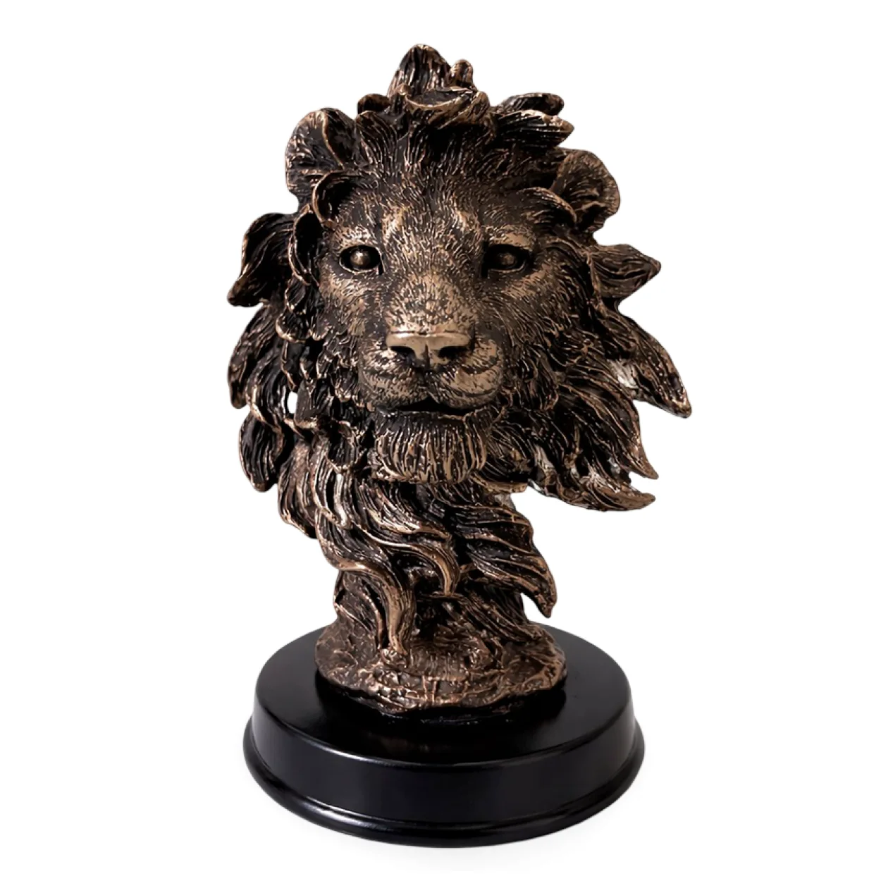 Zarif Polyester Aslan Büstü Dekoratif Figürü: Ev ve Ofis İçin Güçlü Liderlik Simgesi