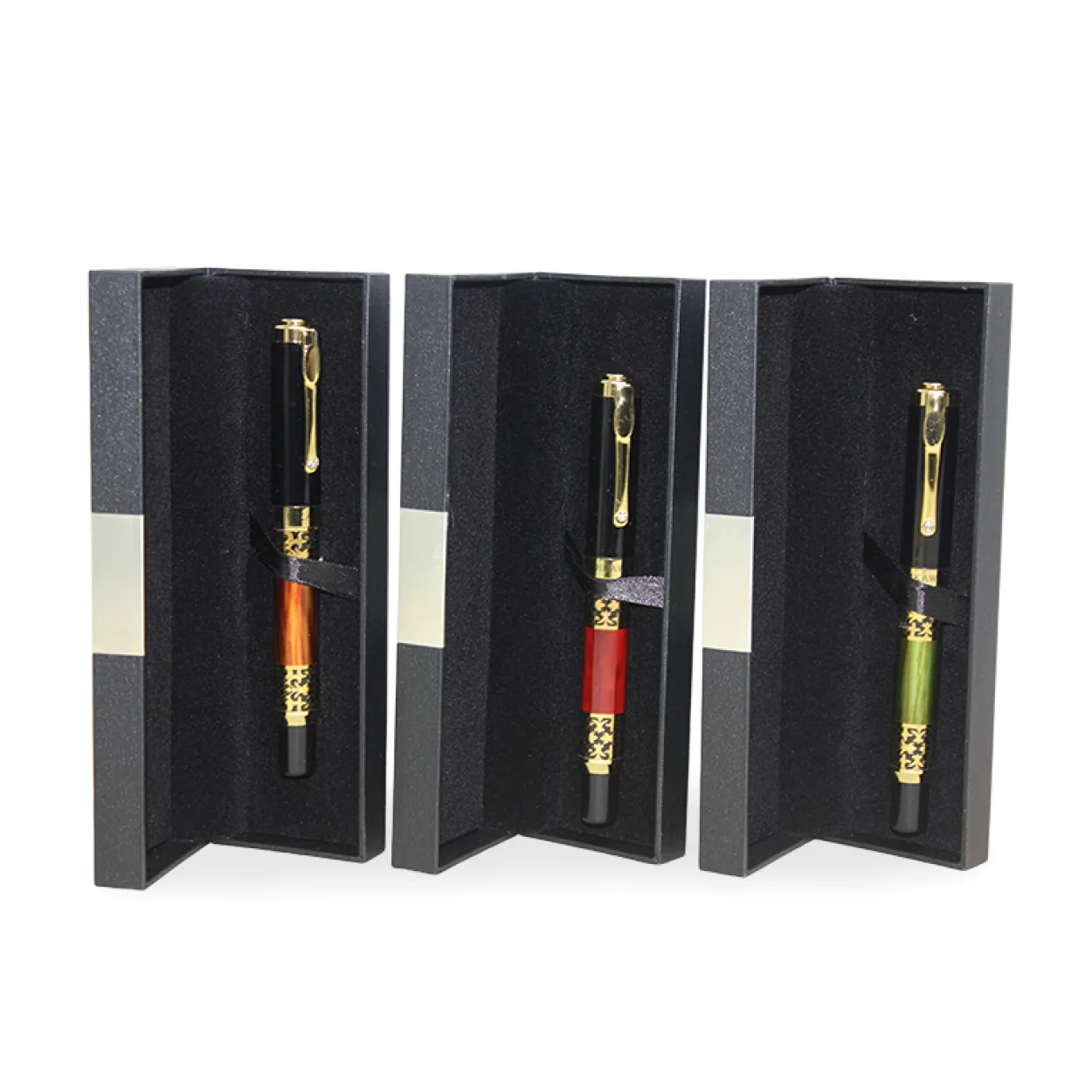 Zarif Tasarımlı Siyah Gövdeli Gold Detaylı Tekli Tükenmez Kalem - Özel Hediye Kutulu